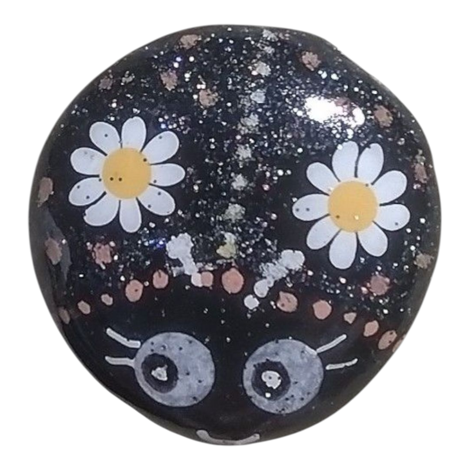 This is my new range of gifts and are handcrafted by me personally, I have designed and painted them on glass stones in acrylics and sealed them with resin for protection. Some have gold leaf or copper under the painting. Each bug is completely different so I have listed them all separately. The little bugs measure approximately 3.5cm across. I have also channelled all the hugs in a bug with Reiki energy. Each bug comes gift packaged on a presentation card and pretty gift bag (various colours, colour of bag random but do let me know if you have a preference by emaling huginabug@gmail.com ) so would make a lovely sentimental keepsake or charm to carry around or keep by your desk or bed or even in the garden.
