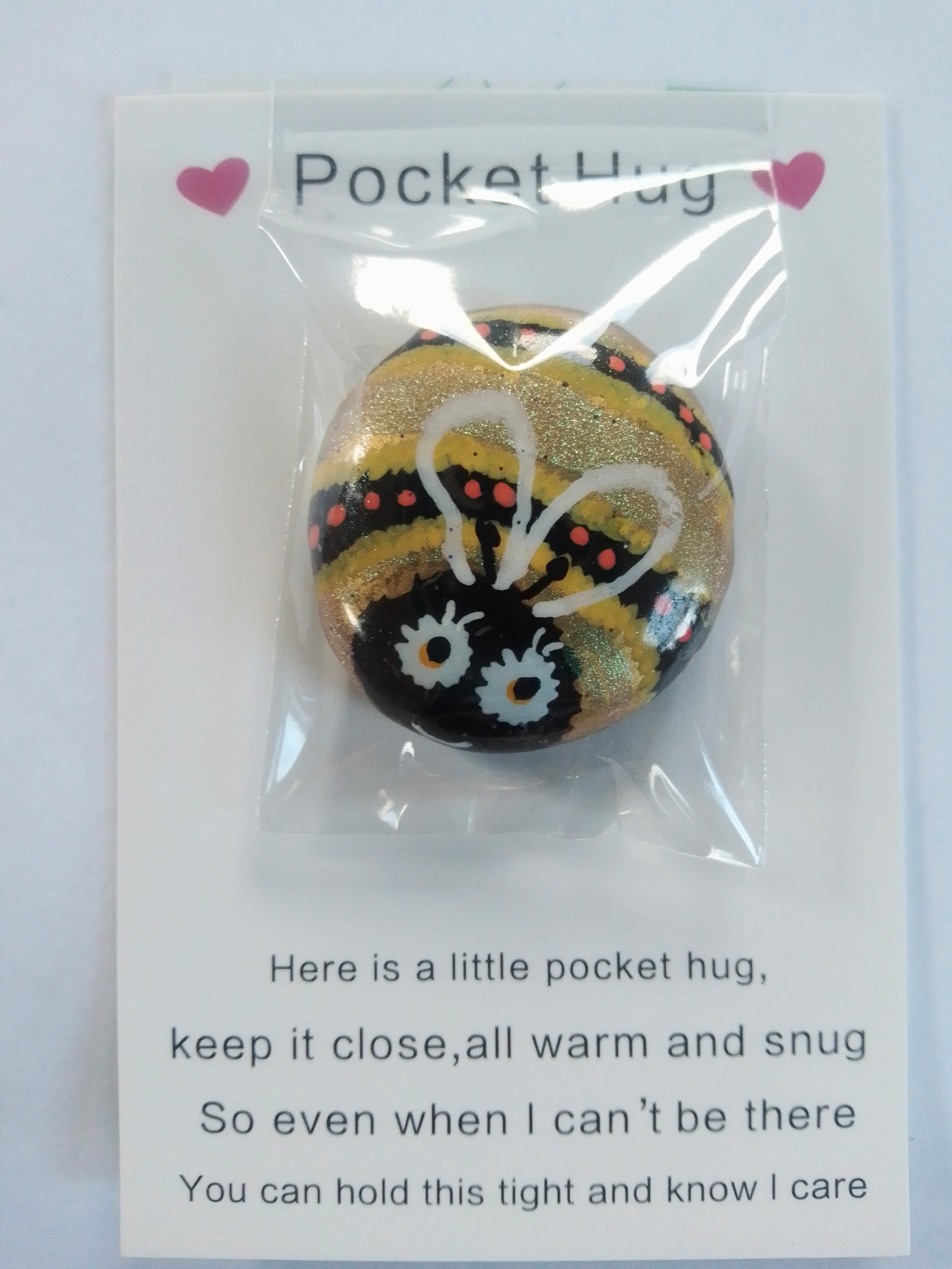 Handcrafted Hug in a Bug Bee pocket hug gift.