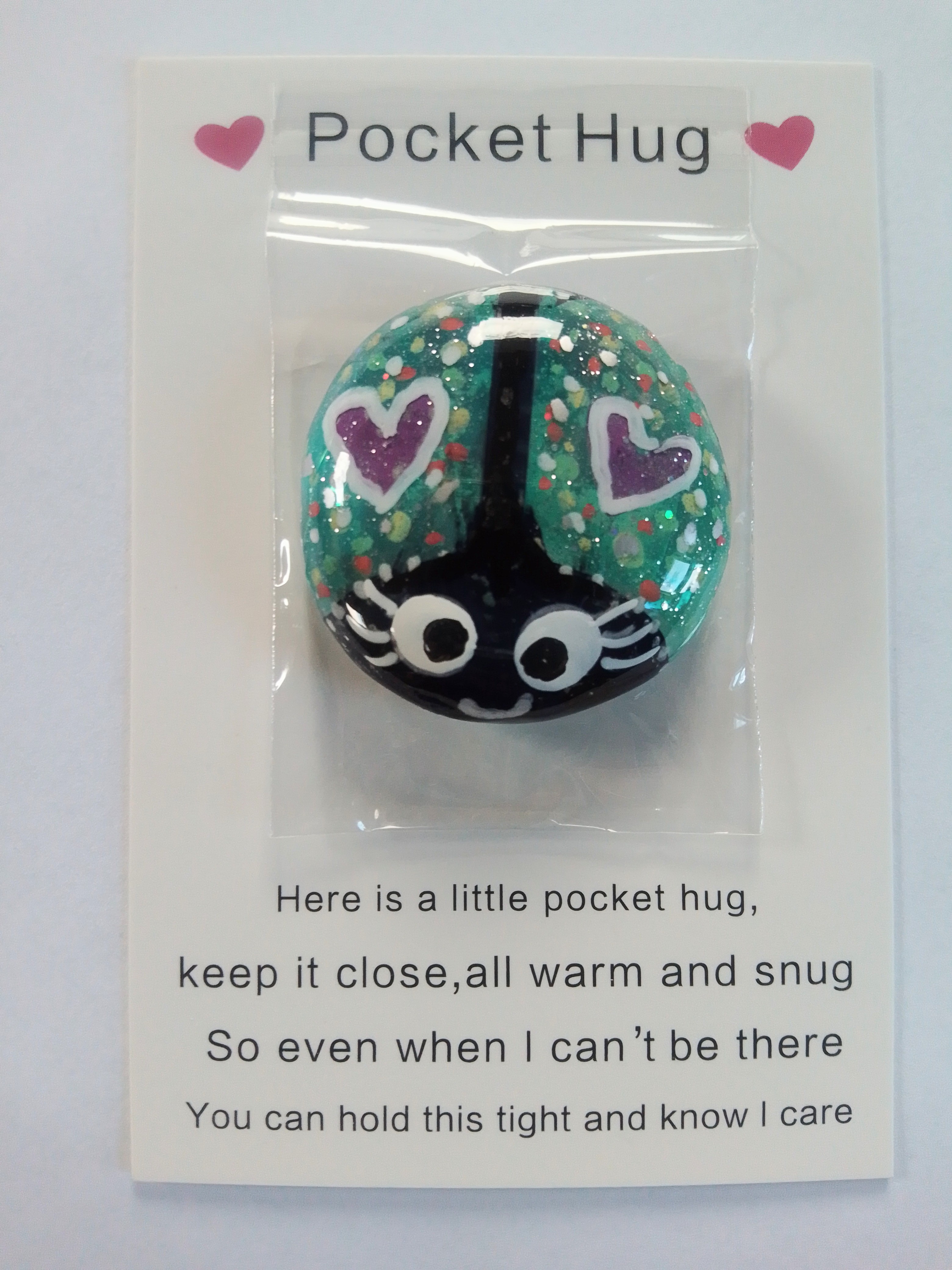 Handcrafted Hug in a Bug pocket hug gift.