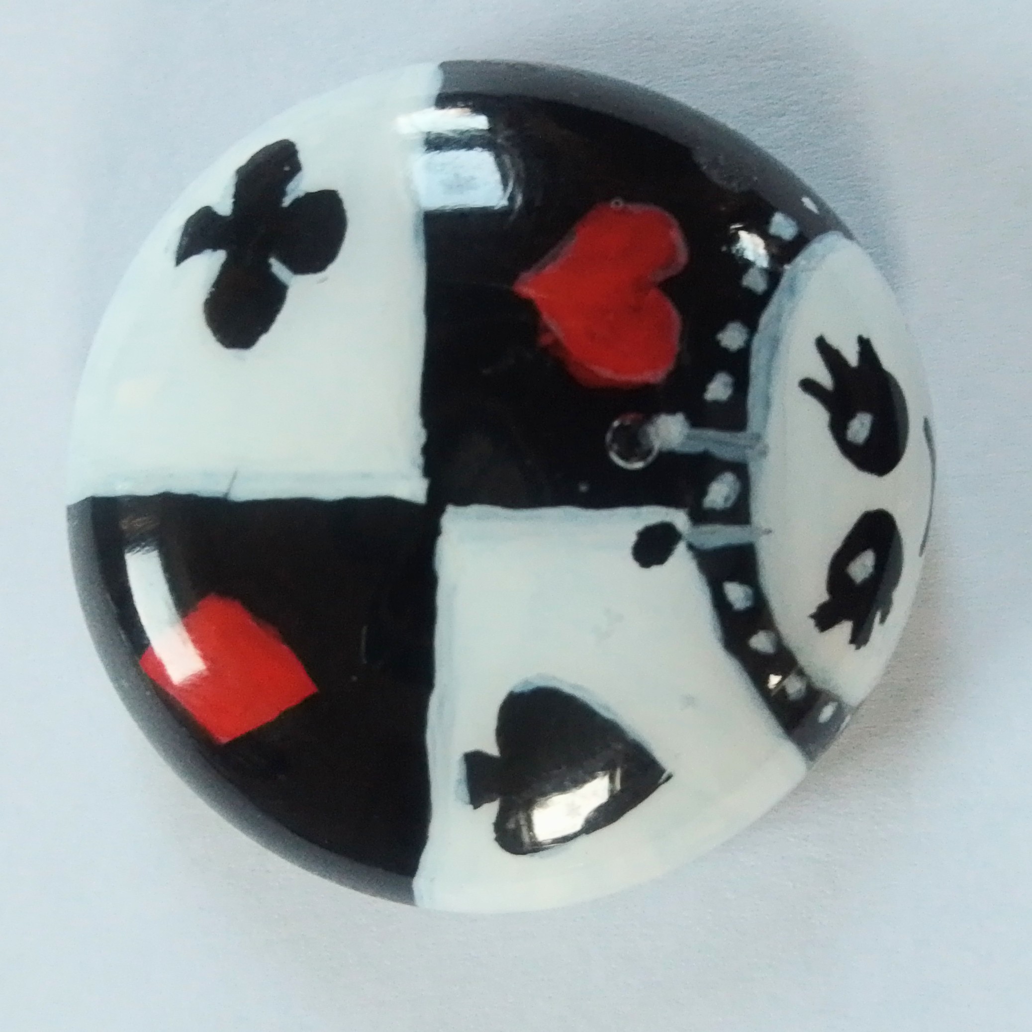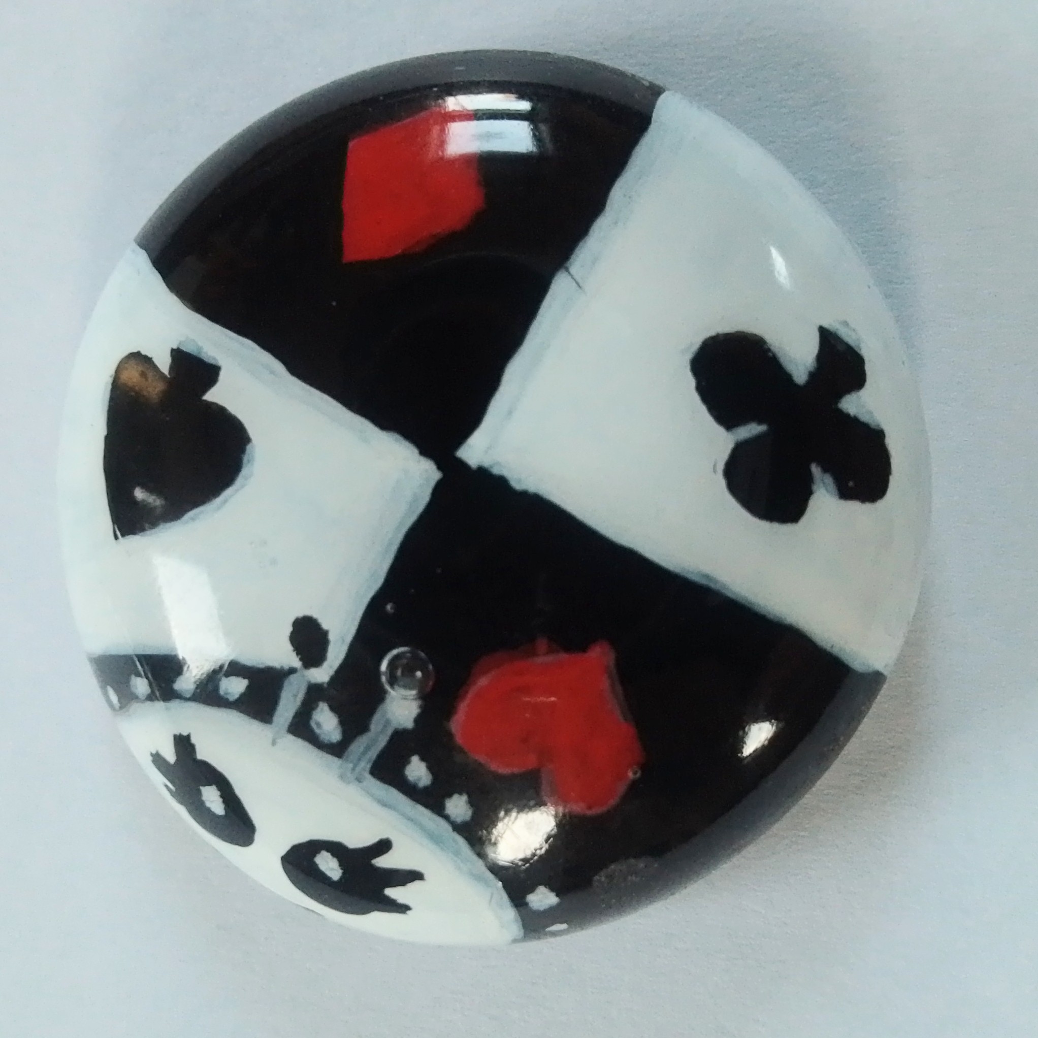 I have designed and painted them on glass stones in acrylics and sealed them with resin for protection. Some have gold leaf or copper under the painting. Each bug is completely different so I have listed them all separately. The little bugs measure approximately 3.5cm across.
