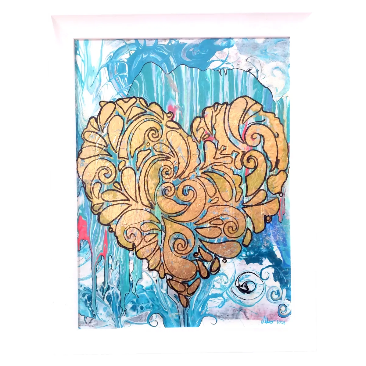 Amateur original Abstract Acrylic painting " The Truth Within" heart shape