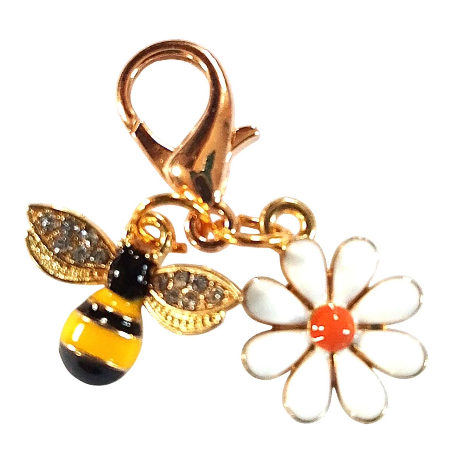 Beautiful Bumble bee and Daisy diamante Keyring/Handbag Charm