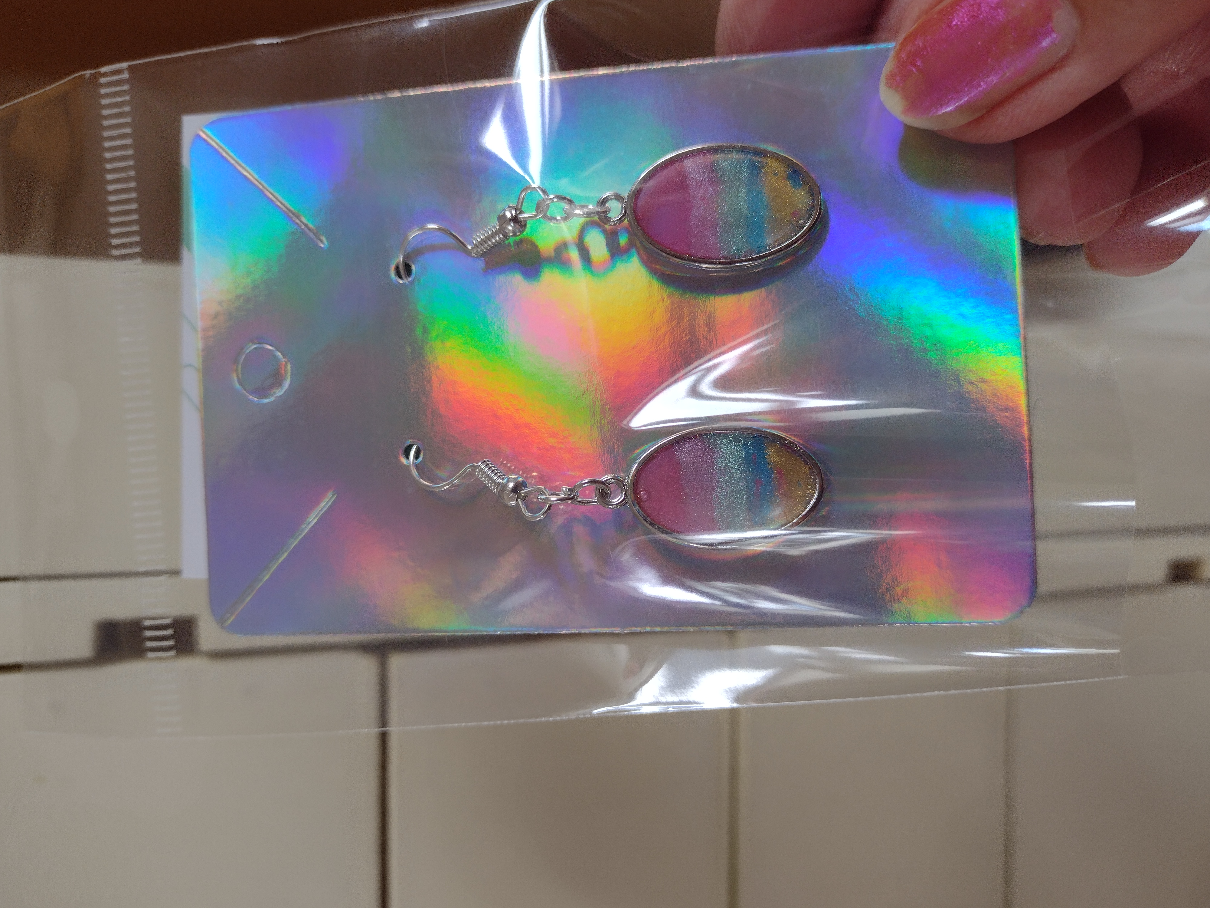 Handmade earrings oval shaped rainbow pastels Handmade earrings oval shaped rainbow pastels Handmade earrings oval shaped rainbow pastels