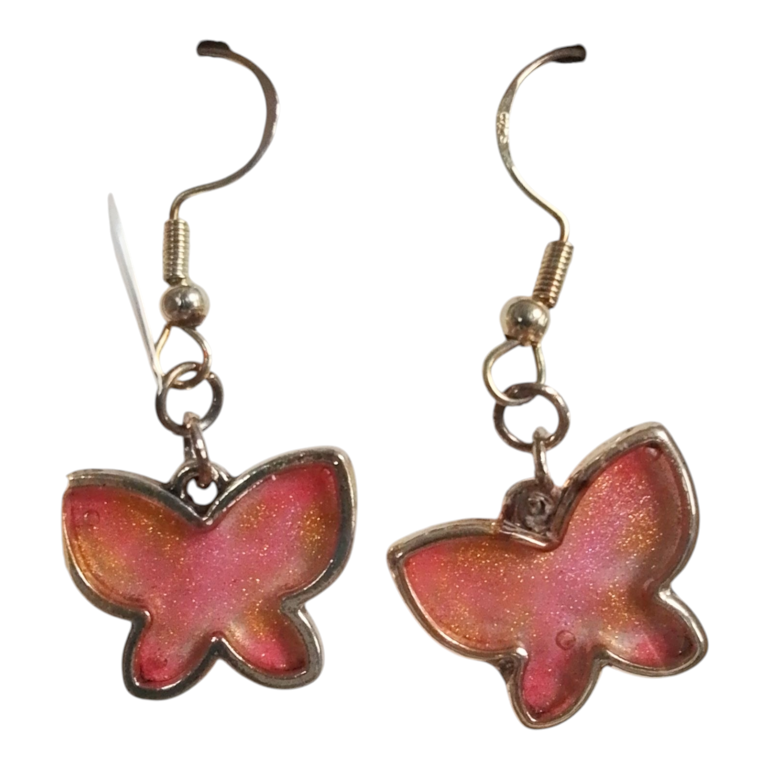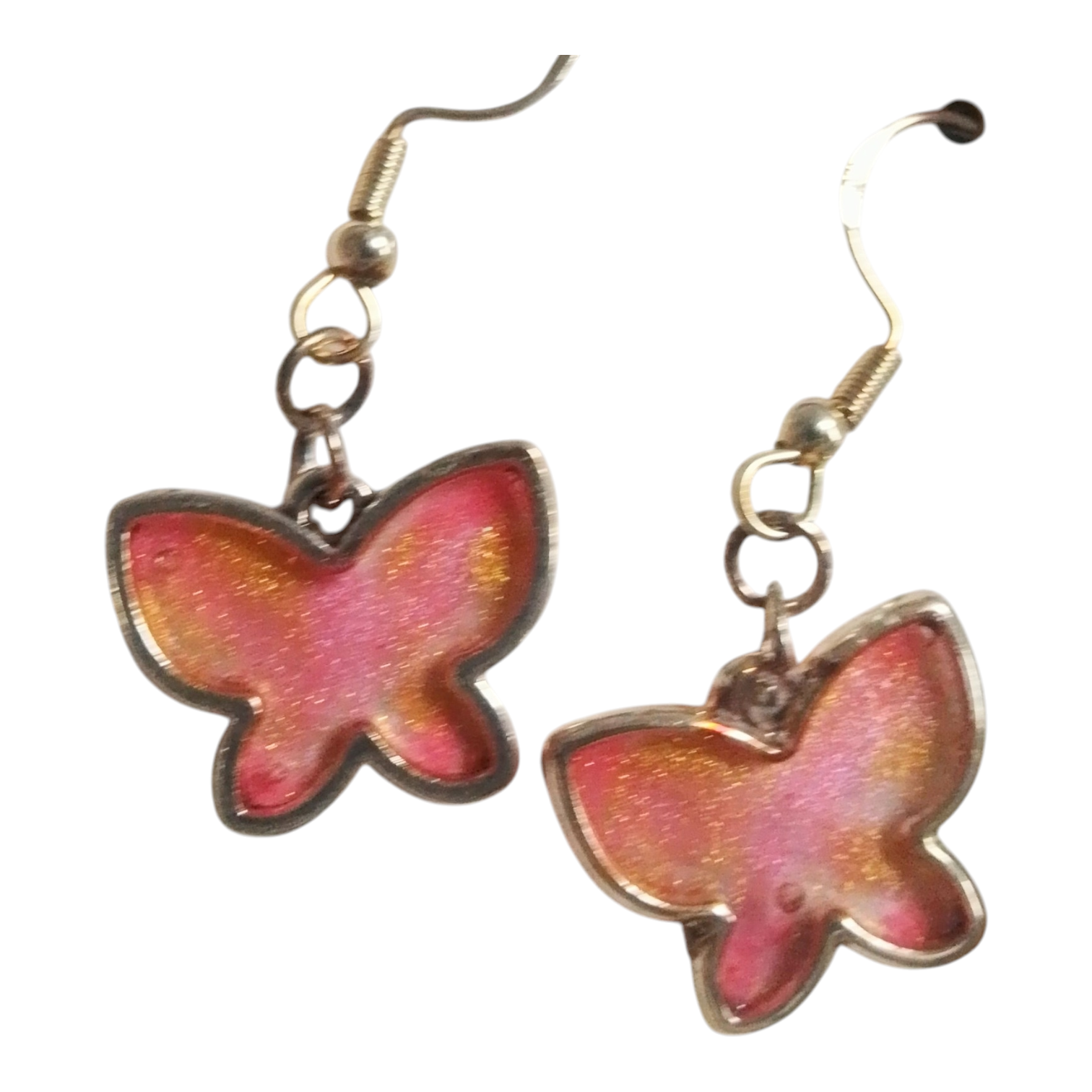 Handmade earrings butterfly shaped pink and gold , handmade with love.