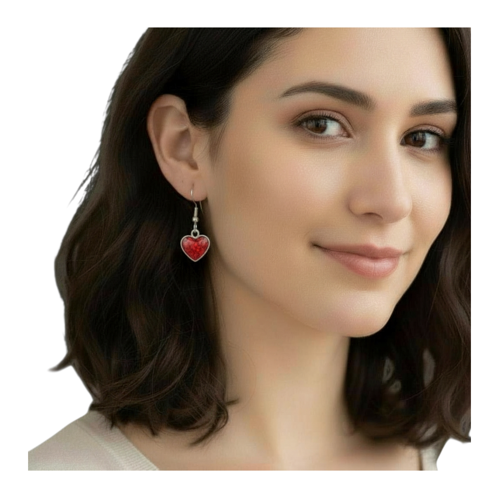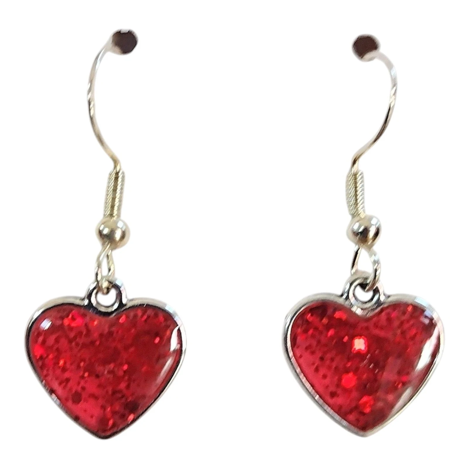 Handmade earrings heart shaped Red glitter Valentine's day