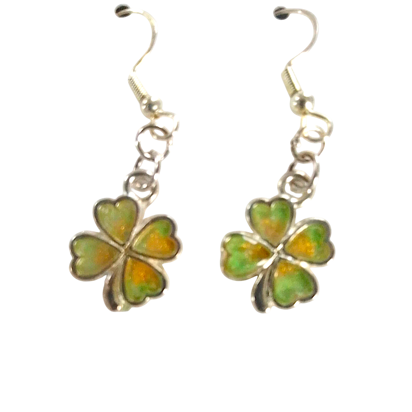 Beautiful clover leaf lucky dangle earrings, gold and green, handmade with love.