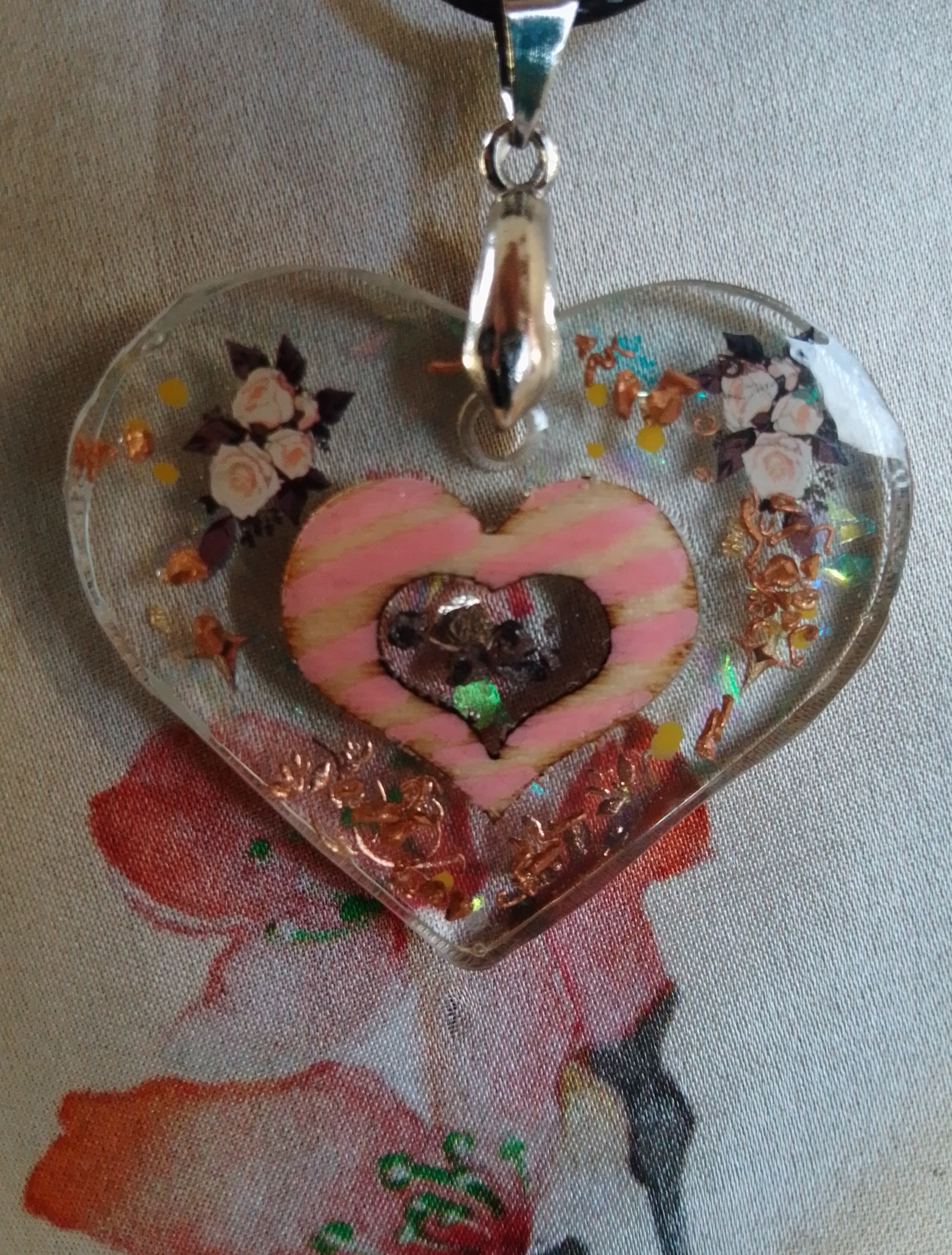 A beautiful pendant with pretty hand painted and applied designs.