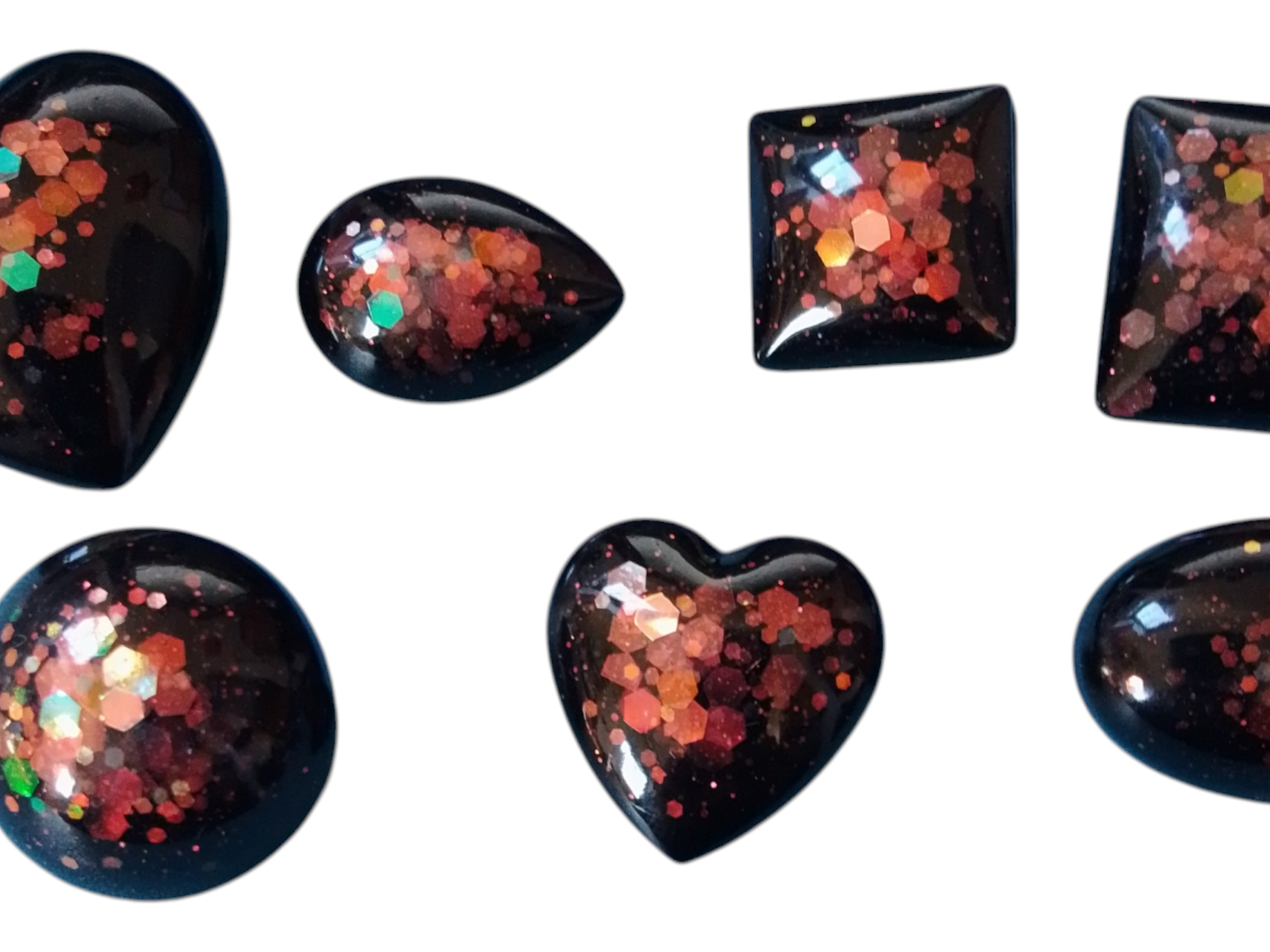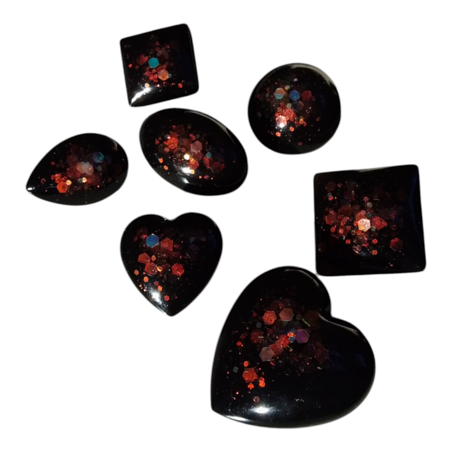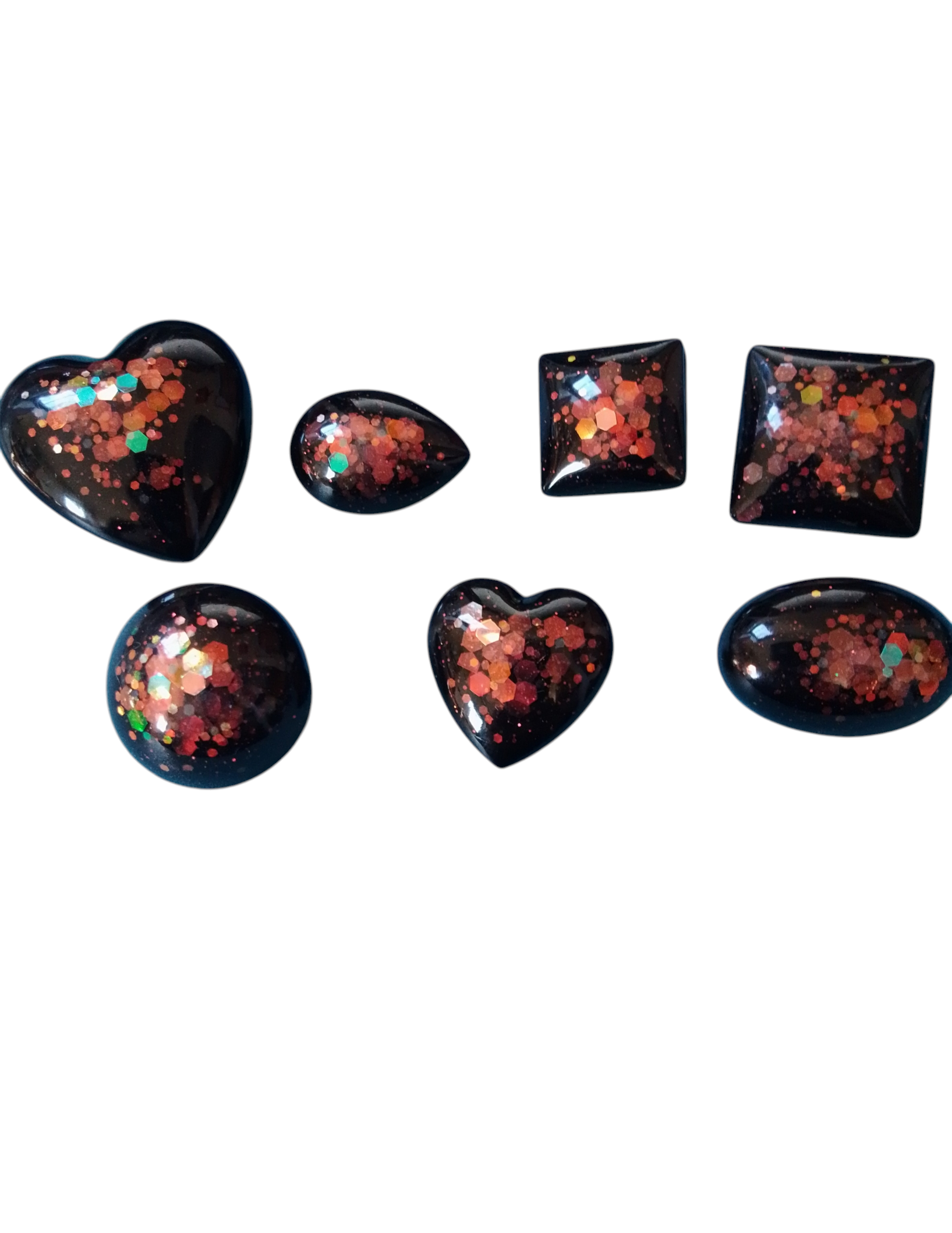 These items come as a set of 7 and are made from black resin with glitter highlights, they can be worn at parties or worn as mourning brooches,
